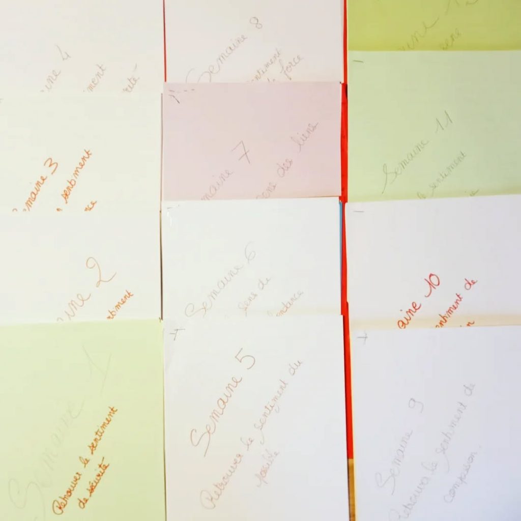 Quatre ateliers d’1 heure 30 répartis tout au long du mois de Novembre pour accompagner six jeunes dans la rédaction d’un texte à restituer sur scène le 7 décembre prochain ? Autant vous dire que j’ai tout de suite dit OUI ! Objectifs : les accompagner à faire le bilan de l’année écoulée et à parler d’eux de façon positive. Je suis très heureuse de les avoir rencontrés et d’avoir eu la liberté de mener ces ateliers à ma façon ! Un grand merci à Éva pour la mise en contact, à Émilie et Simon pour leur confiance et à Julia, Nicolas, Léa, Noélane, Martha et Éva pour leur confiance et leurs mots.